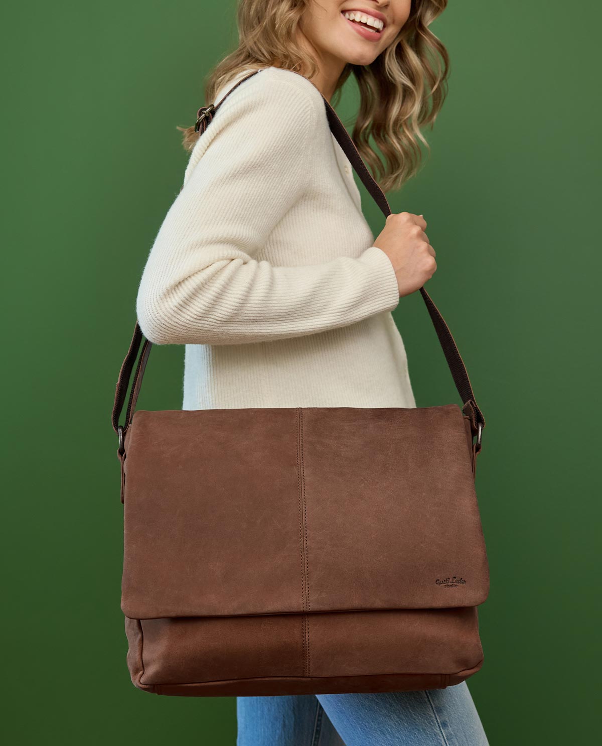 Our shoulder bag is made of high-quality, robust leather. The durable material gains character over time and develops a unique patina. Each bag is handmade and has its own individual features, making it a unique one-of-a-kind item. The brown color gives the bag an authentic vintage look that goes perfectly with any outfit. The bag also offers plenty of storage space: one main compartment is large enough for a tablet, notebook, or important documents. Two inner compartments and a zippered pocket keep everything organized, while the adjustable shoulder strap ensures optimal comfort—whether carried casually over the shoulder or across the body.