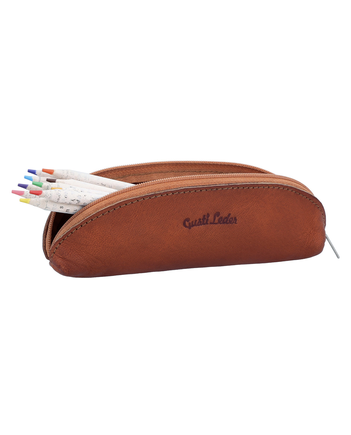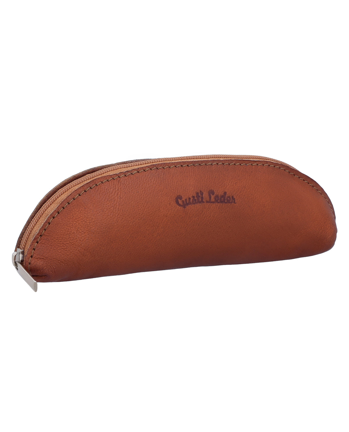 A sturdy zipper ensures that the contents remain reliably protected and nothing gets lost. The discreet Gusti logo underlines the high-quality character of the pencil case without being obtrusive. In addition, "Vilo" can be engraved on the outside, turning the small pencil case into a personal accessory or a stylish gift. "Vilo" has a deliberately minimalist design and is versatile – for everyday use, when traveling, or in the office. A small leather pencil case for men and women that impresses with its simplicity and does exactly what it's supposed to do.