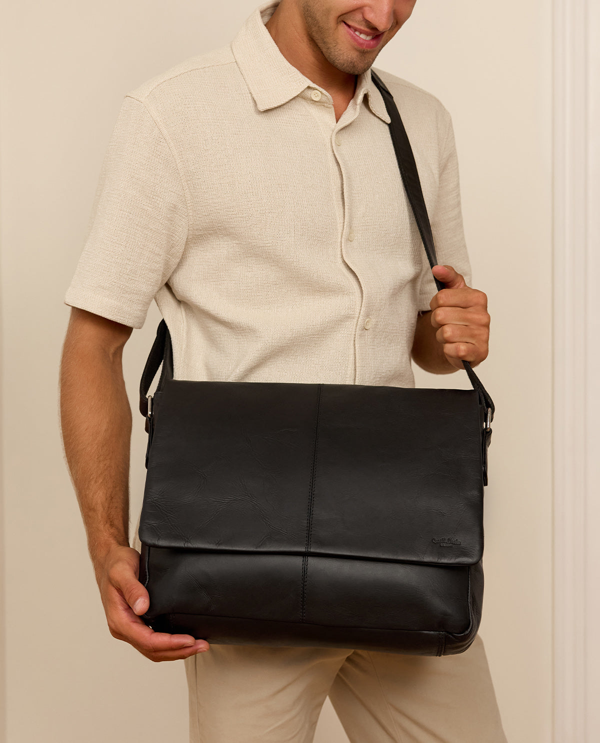 Simple, stylish, and timeless – the crossbody bag „Reign“ impresses with its classic design and high-quality black leather. It is the perfect companion for everyday life, whether in the office, traveling, or during leisure time. The combination of robust material and thoughtful design makes this leather bag a must-have for style-conscious gentlemen.