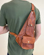 Our sling backpack "Joan" is a practical travel accesory. This naturally-tanned goatskin leather bag will impress you with its natural charm and sense of style. The inner compartment has enough space to go to a concert, enjoy a festival or take a stroll through the city while carrying your essentials. Two smaller external pockets, secured a press stud, offer additional storage space for small items that you always want to have to hand. Your phone, headphones, tissues, ID and wallet.