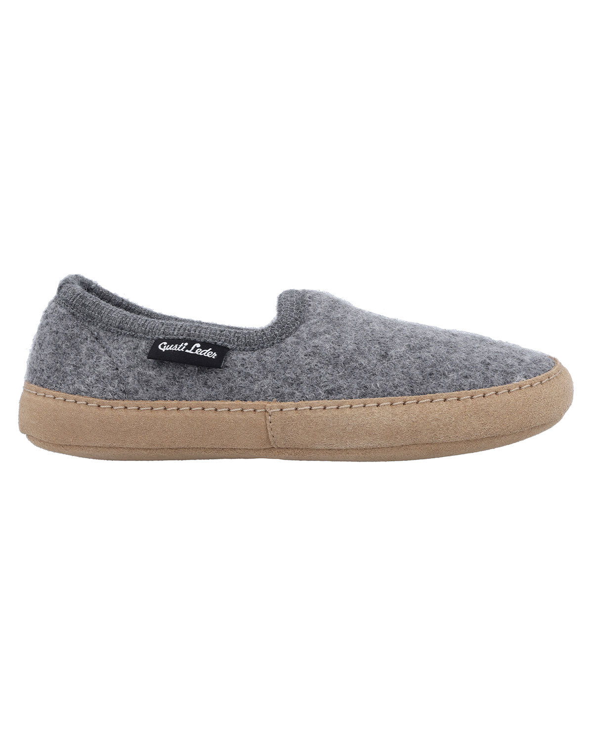 The outsole made of genuine leather provides a flexible base and quiet steps on all floor coverings, while the padded insole made of virgin wool conveys a springy walking sensation, as if you were walking on clouds. The slippers are manufactured in Europe – in Austria and Hungary – and stand for sustainable processing and natural materials. A small fabric label with the white "Gusti Leather" logo and a woven size label in the heel area complete the high-quality workmanship. With "Marah" you enjoy comfort, style, and environmental awareness in one shoe.
