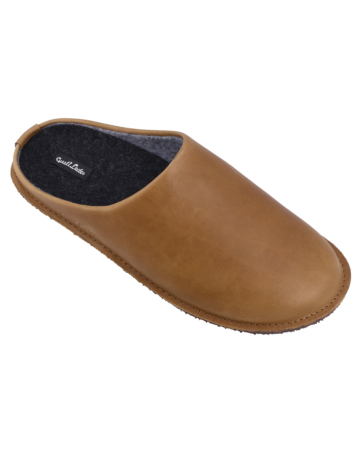 With "Alessio", you enjoy pure coziness – and in the most stylish way. These high-quality slippers made of fine cowhide leather impress with their durable quality and timeless design. The smooth leather gives them an elegant look that perfectly fits any living environment, while the lining made of pure virgin wool keeps your feet warm without overheating. The combination of natural materials and careful craftsmanship makes "Alessio" the ideal companion for relaxing hours at home – comfortable, breathable, and elegant at the same time.
