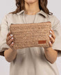 Die "Orman" ist die ideale Kosmetiktasche für alle, die Wert auf Stil und Nachhaltigkeit legen. Gefertigt aus handgewebtem Raffia, begeistert sie mit ihrer feinen Struktur und dem warmen braunen Farbton. Raffia ist ein natürliches, strohähnliches Material, das aus den Fasern einer Palme gewonnen wird – leicht, flexibel und dennoch strapazierfähig. Diese hochwertige Utensilientasche ist nicht nur ein stilvolles Accessoire, sondern auch ein praktischer Begleiter für unterwegs. Die feinen Leder-Details an den Reißverschlussriemen sorgen für einen edlen Akzent und unterstreichen die natürliche Eleganz.