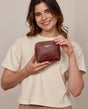 Do you often lose track in your bag and spend ages searching for your mascara or other small items? Then "Leo" is just right for you! This beautiful, small pouch ensures order in the endless depths of your bag and impresses with its stylish design. Made from high-quality brown cowhide leather, it exudes a natural elegance that seamlessly fits into your everyday life. The all-around accent zipper emphasizes the classic look and makes "Leo" a stylish companion – subtle, yet still an eye-catcher.