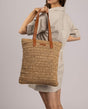 Shopper Strandtasche Raffia Tasche Handgewebt Damen Natur Leder
