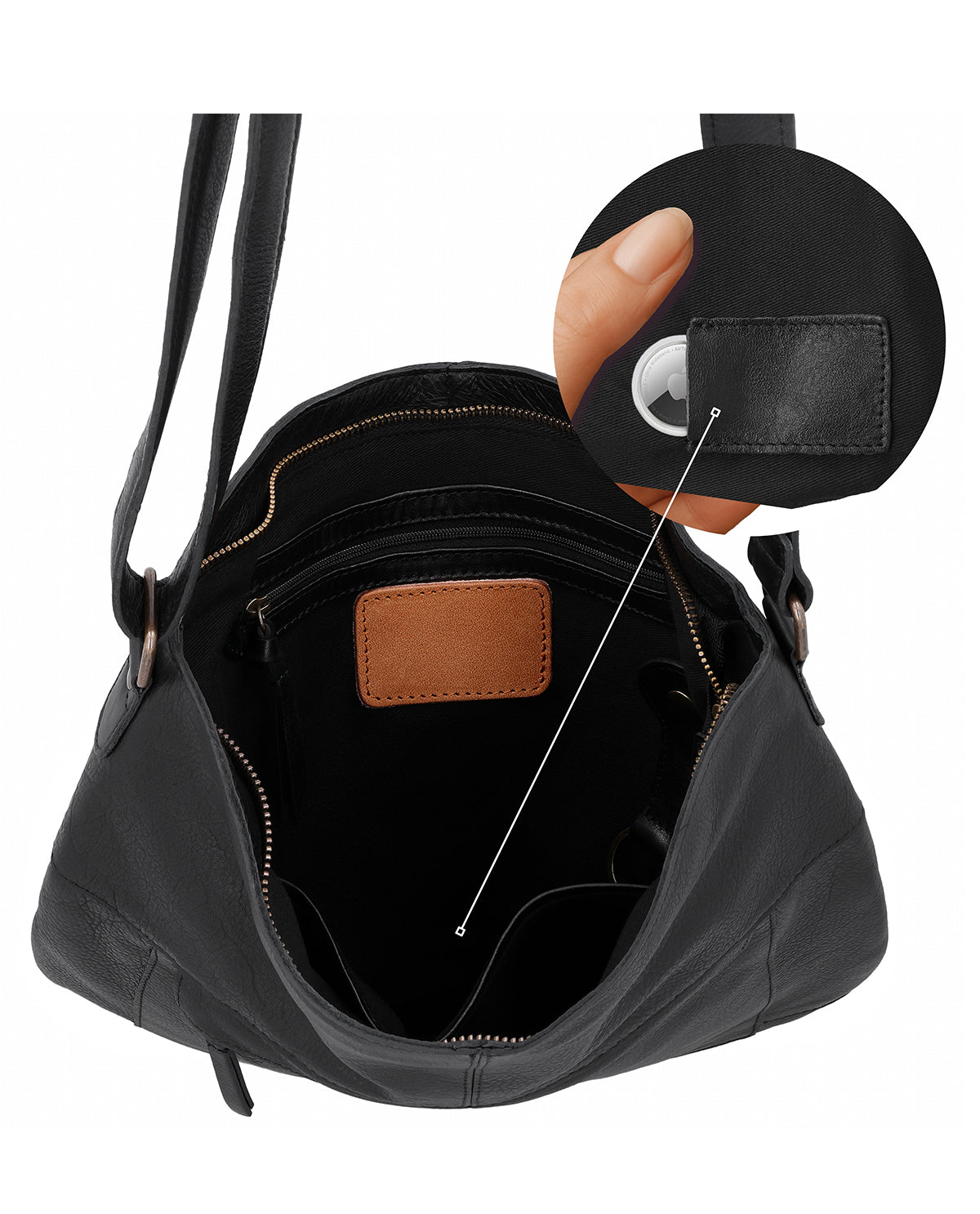 Shoulder bag with Airtag pocket and matching keyring