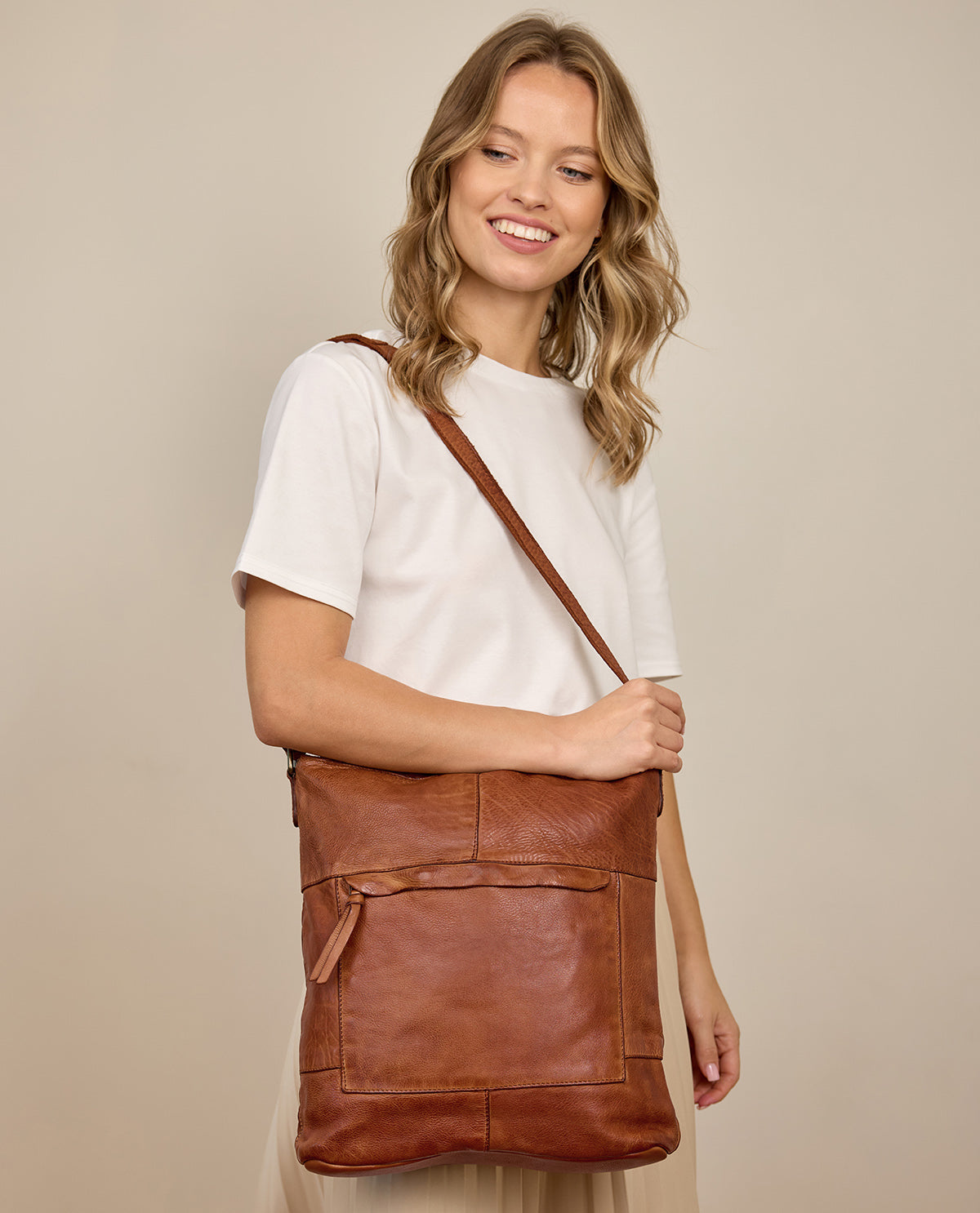 The spacious main compartment of this high-quality shoulder bag made from super-soft cowhide leather, where you can easily store documents up to the size of DIN A4, along with the additional slip pockets and the zippered interior pocket, offer you an optimal overview of the essentials in your bag without having to rummage for long. And to ensure that everything you carry is safely stored and well protected, "Maola" closes with a wide sturdy zipper. Additionally, another zippered pocket is integrated into the design on the front, where you can always keep smaller items like a smartphone or headphones within easy reach. The adjustable shoulder strap provides the necessary comfort and flexibility, allowing you to wear "Maola" as a shoulder bag with a short strap or as a classic crossbody bag.