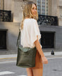 The main compartment in this shoulder bag is secured using a sturdy zip, so none of your belongings can go missing. “Jacqueline” has an extra tab that’s secured with a magnetic popper. So, you’ll have plenty of space for your water bottle, purse, notebooks, keys, and makeup. There’s an extra zipped pocket on the front of the bag where you can keep your phone, headphones, or gum.