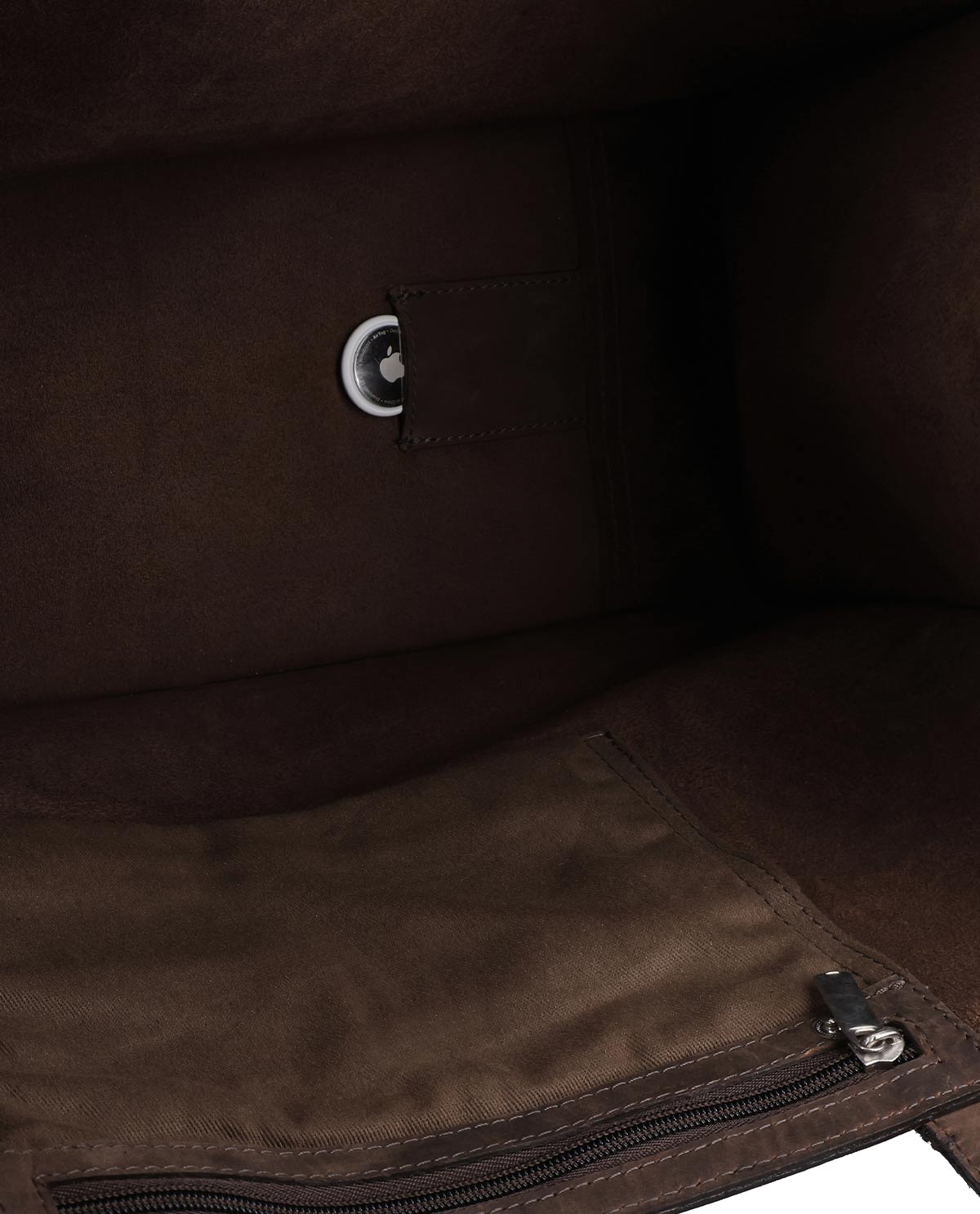 Inside, the "Agatha" shopper impresses with its clear organization. A single zippered compartment reliably protects your valuables, while an integrated AirTag compartment gives you additional security. The practical key strap ensures that you can find your keys immediately. The design is rounded off by a discreet engraved patch that makes "Agatha" your personal favorite – functional, tidy, and well thought-out down to the last detail.