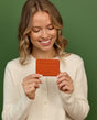 The "Qani" card holder is the perfect choice for anyone who values organization and elegance. Made from high-quality orange leather, it impresses with its compact size and elegant design. The noble color and fine craftsmanship make it a stylish accessory that is not only functional but also a real eye-catcher. With this card holder, you always have everything important with you – and in the best quality.