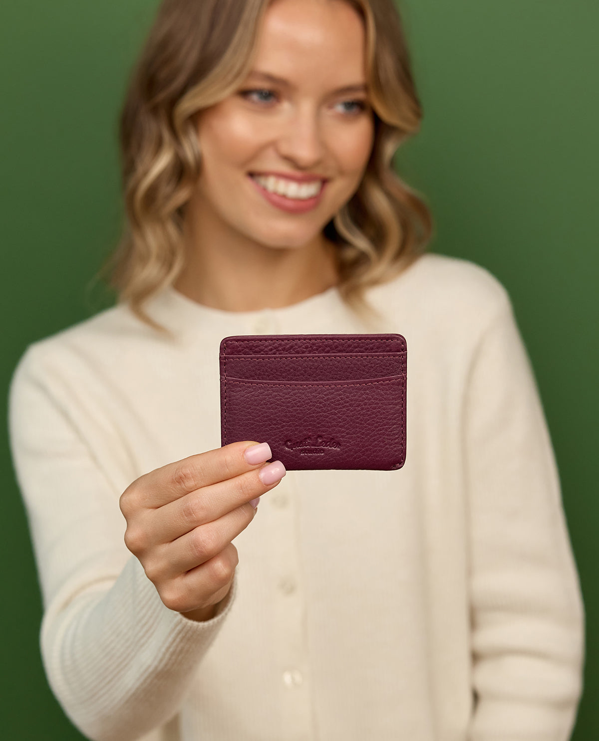 Practical and stylish – the "Qani" card case made of purple leather