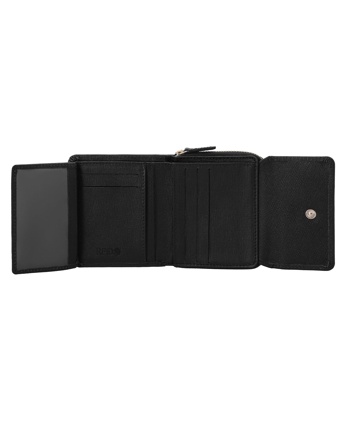 Are you looking for a functional, compact, and chic wallet that fits in any bag? Our "Brigitta" has lots of compartments and an extra window! With its trendy Saffiano look, "Brigitta" not only looks extremely stylish, but also combines functionality and style!"Brigitta" has RFID protection for added security. This is marked as a discreet RFID embossing on the inside.