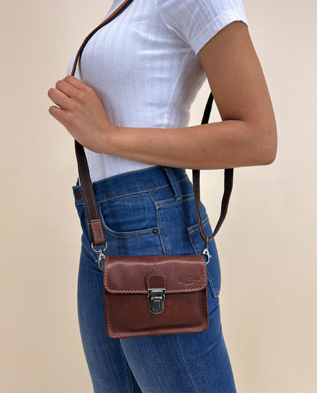 The brown leather wallet stands out with its elegant and compact design. The main closure is in the middle, allowing you quick access to your cards and cash. On the back, an additional closure provides extra security. This wallet is perfect for daily use as it is both practical and stylish.